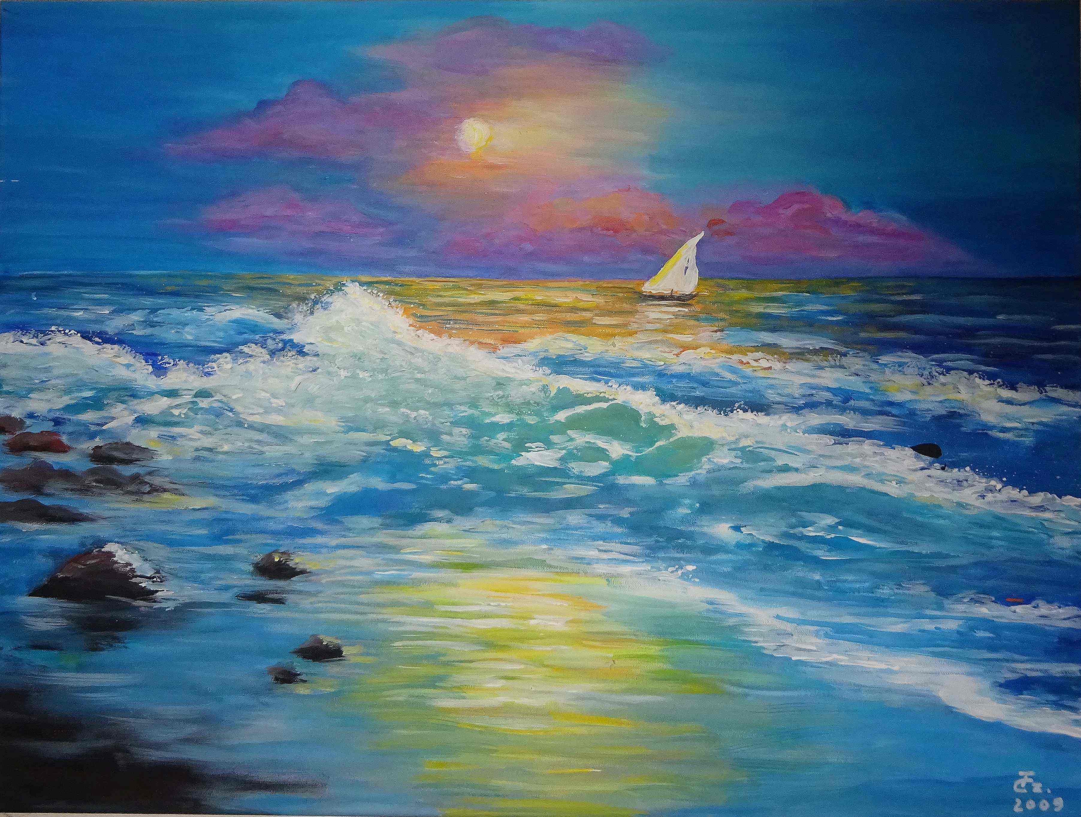 Stürmische See mit Segelboot