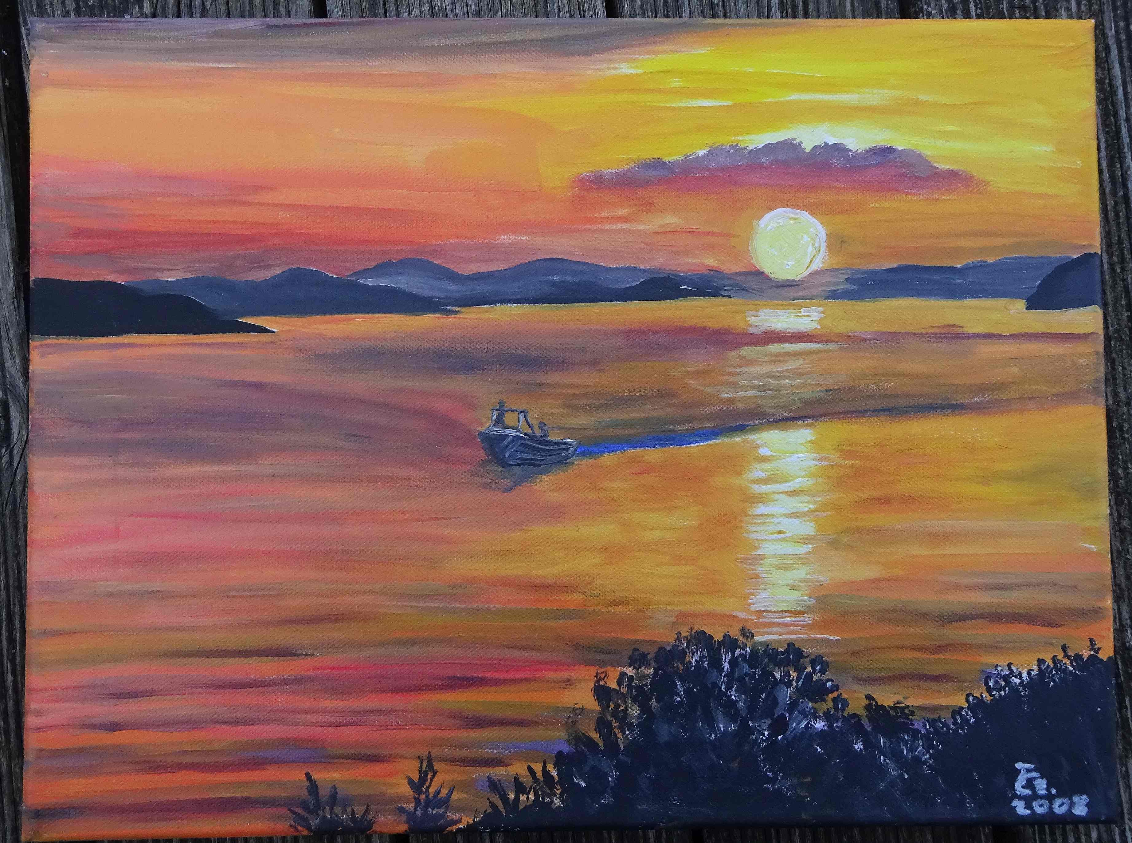 Sonnenuntergang mit Boot am See